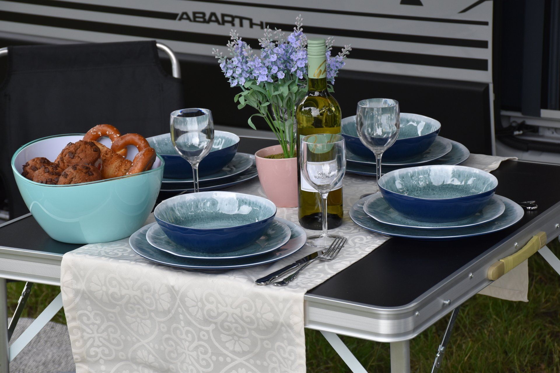 Eure Kochkünste könnt ihr anschließend bequem am Campingtisch mit Campingstühlen, unter der eingebauten Markise mit ausreichend Sonnenschutz genießen. Für die Sonnenanbeter kann die Markise problemlos wieder eingefahren werden.
